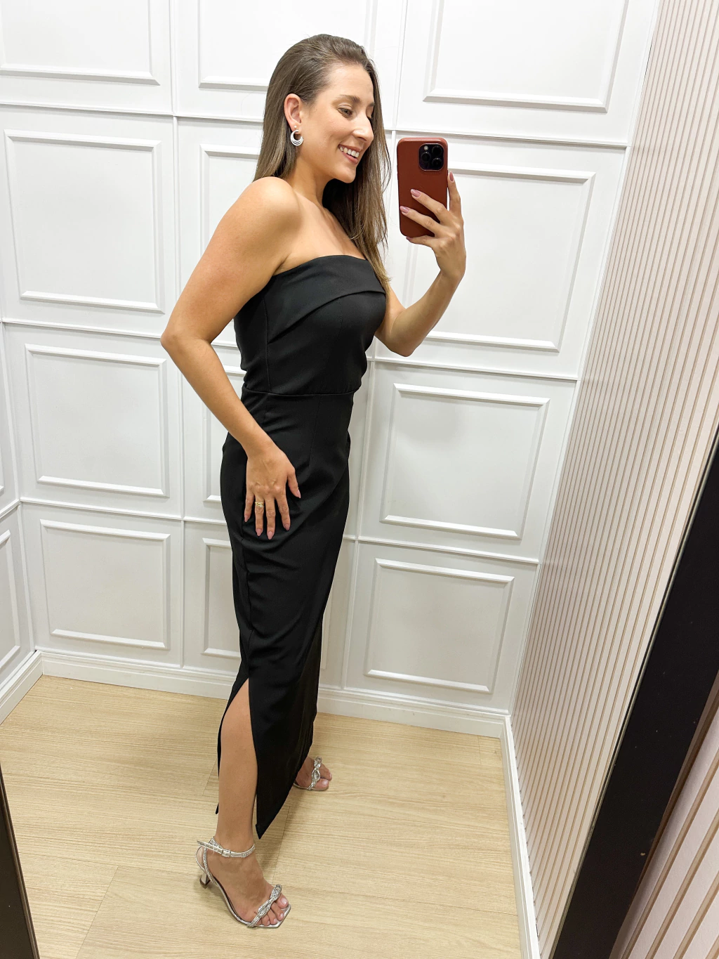 Um dos grandes diferenciais do Vestido Bella são suas alças versáteis, que podem ser usadas de diversas formas — desde amarrações criativas até o estilo tomara que caia, como mostrado na foto do vestido preto. Essa característica transforma seu look e permite múltiplas combinações para diferentes ocasiões.